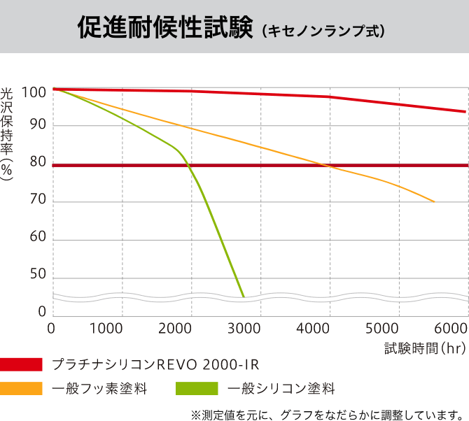 ※1 期待耐用年数 ※あくまで試験環境下における推測値であり、耐候性を保証するものではありません。実際の自然ばく露環境下では、